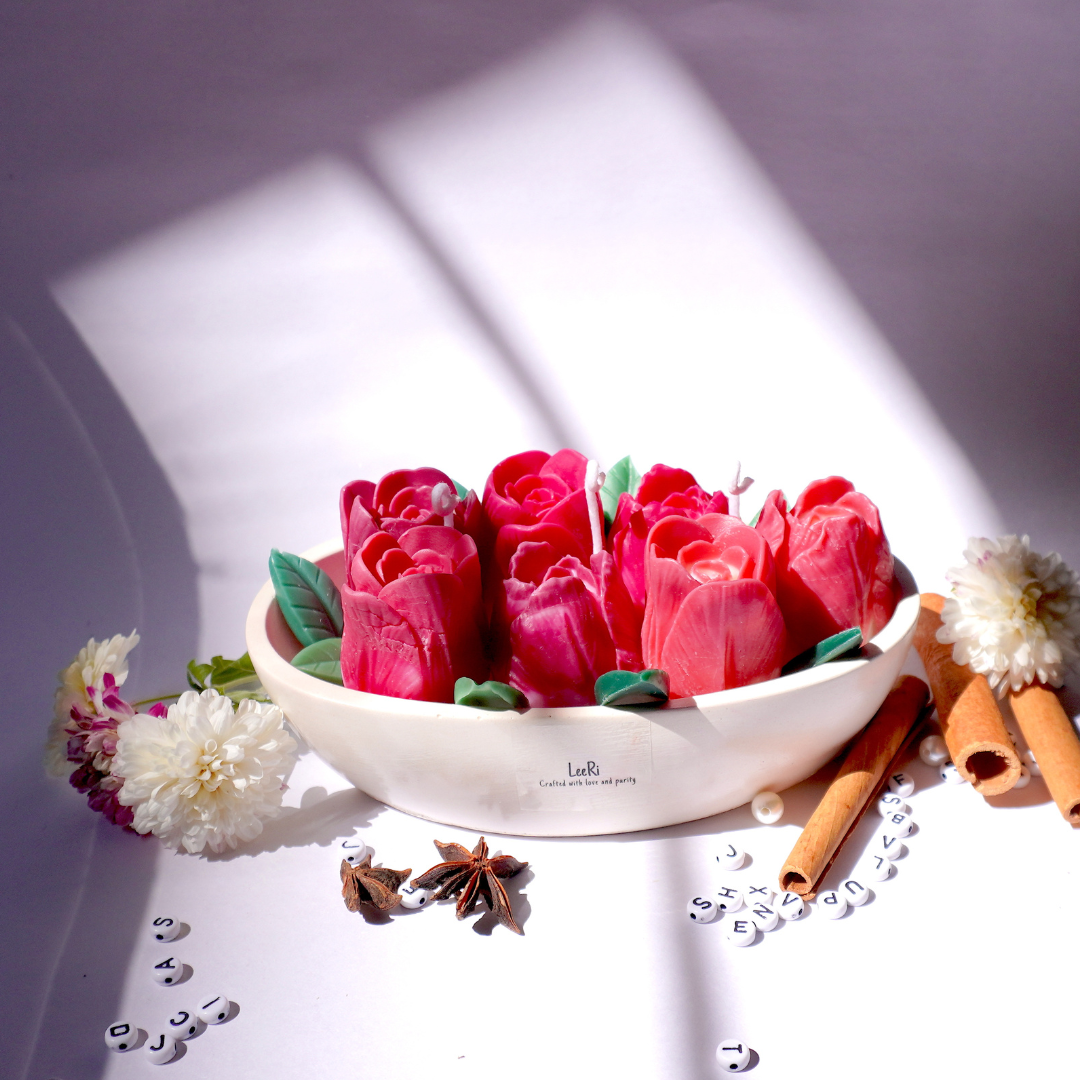 Red Tulip Boat Candle